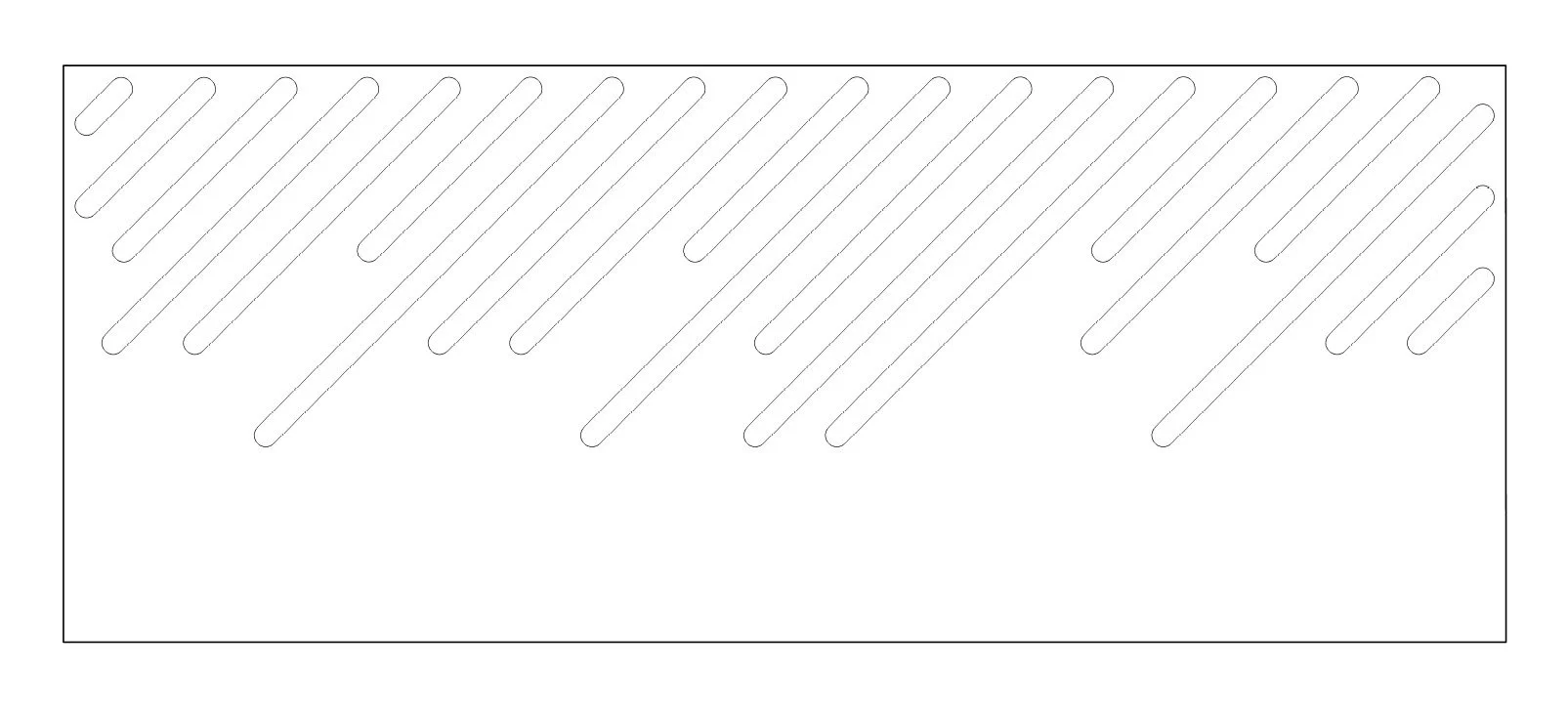 Ce projet puise dans l’histoire de Gypass, née d’un défi technique : concevoir des ouvertures de grande dimension capables de résister aux intempéries. Le projet traduit cette mémoire à travers un motif de lignes parallèles inclinées à 45°, évoquant la pluie et l’expression « il pleut des cordes ». Ces « cordes de pluie » traversent le portail et instaurent un lien direct avec l’identité pionnière de la marque.
